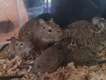 Lolly & Leila are 2 sweet, hand-tamed baby girl Degus that were born on June 27th, 2022.